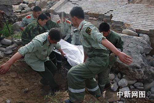 随后,消防战士又将两名死者挖出,并送往医院。