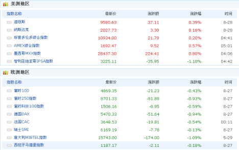 截至收盘,道琼斯工业平均指数上涨37.11点,涨幅为0.39%,至9580.63点;纳斯达克综合指数上涨3.30点,涨幅为0.16%,至2027.73点;标准普尔500指数上涨2.86点,涨幅为0.28%,至1030.98点。