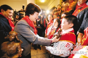 市委副书记张轩、副市长童小平等接见了获奖代表,并为每位获奖代表颁发了一尊雷锋铜像。张轩说,雷锋铜像是由薄熙来书记点名制作,并亲自监制修改,希望送给全市优秀少先队员和少先队辅导员,让雷锋精神代代相传。