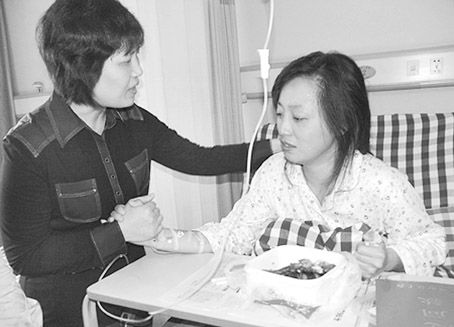 图为杭州市总工会到医院看望被打女工王鸿丽。资料图片