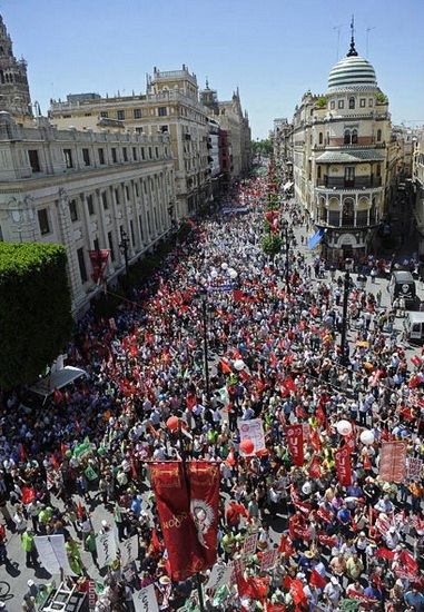 塞维利亚街道上被罢工人群围得水泄不通。