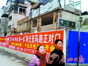 精武路拆迁,商家打出巨大的“迁址通知”留住回头客。