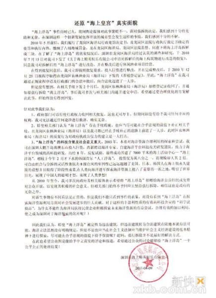 “海上皇宫”方发表声明