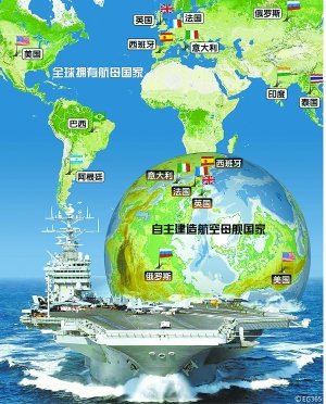 目前,安理会常任理事国中,只有中国没有航母,美国11个航母编队,有6个部署在太平洋海域,法国、英国等国航母编队也经常在亚太活动。目前,中国周边的印度、泰国等国也已拥有并继续大力发展航母,日本和韩国已拥有大型载机舰(准航母),还计划引进美国F—35B型舰载机,也将拥有航母的战斗能力。