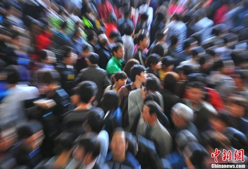 国庆期间,多地现“人海”景观。图为滁州汽车中心站客流如潮,形同“井喷”。中新社发 王家国 摄 CNSPHOTO